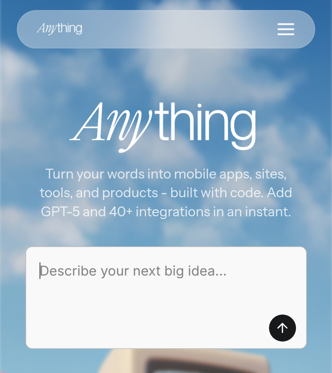 The service offers the integration of GPT-5, Whisser AI and over 40 other integrations, allowing users to enhance their applications with advanced features and functionalities. This flexibility empowers users to create customized solutions that meet their specific needs without the complexities typically associated with app development. Whether you're looking to launch a new product or streamline existing processes, Anything provides the tools and support necessary to bring your ideas to life efficiently.